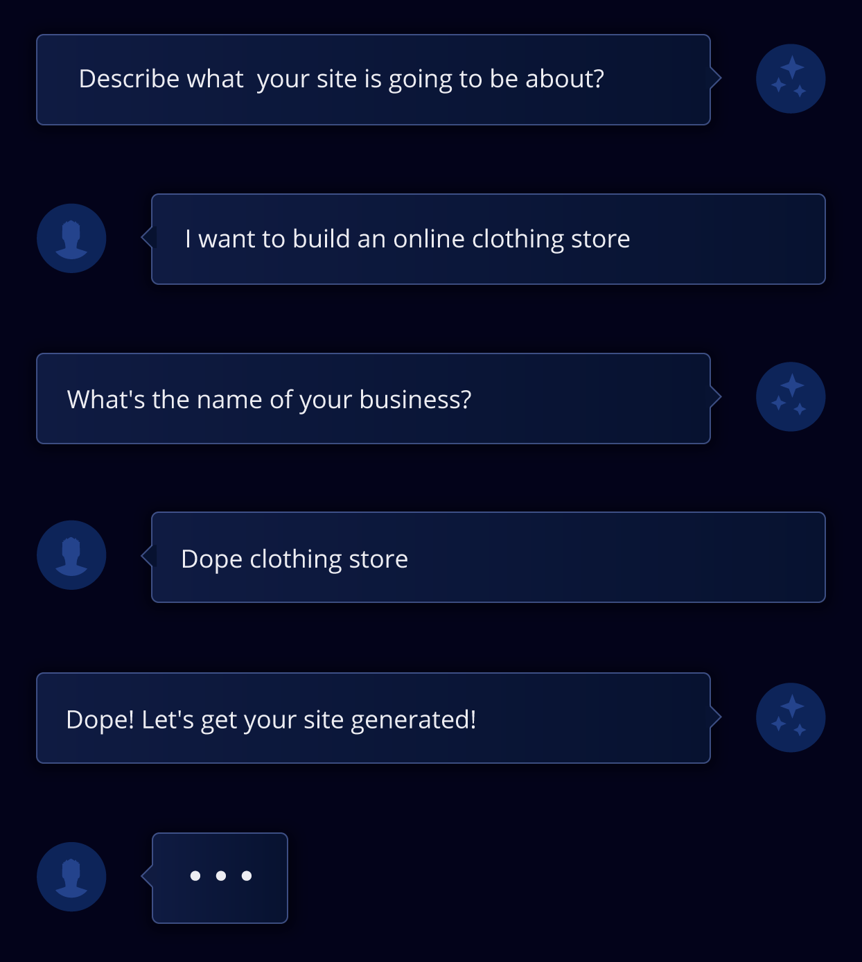 Answer a few questions about your business with our AI assistant and get the right website for your business in minutes.